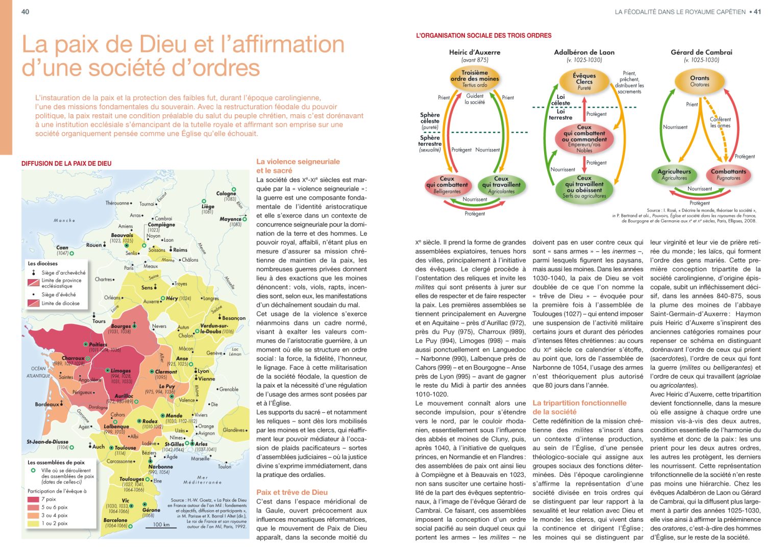 Conçu dès l’origine comme un complément de l’Atlas de la France médiévale (2005) d’Olivier Guyotjeannin et Guillaume Balavoine, l’Atlas d’Antoine Destemberg propose de parcourir les dix siècles du Moyen Âge en se focalisant sur les aspects politique, économique, social et culturel de la période. Les cartes se distinguent par leur précision et leur clarté que complètent habilement quelques graphiques soignés. L’historien et le cartographe proposent une approche multiscalaire en donnant à voir aussi bien des cartes régionales que locales, voire quelques plans simplifiés de bâti. Ces derniers ne concernent toutefois que des espaces bien connus des médiévistes – ainsi l’Île de la Cité à Paris, le palais des papes d’Avignon ou l’abbaye de Cluny – et, en dépit de leur intérêt pédagogique, on regrette que d’autres tentatives de représentation à une échelle locale n’aient pas été esquissées. Quoi qu’il en soit, la conception de l’Atlas ne manque pas de recul critique et rend compte de la difficulté d’appréhender l’espace au Moyen Âge. Le jeu d’échelles cartographiques, commenté au fil des pages par A. Destemberg, permet de faire remarquer que les notions de « territoire » et de « frontière » n’étaient pas aussi nettement définies au Moyen Âge qu’aujourd’hui. Il rappelle aussi que toute production cartographique a son histoire et sa perspective et que ni la carte ni les concepts ne sont anodins. Il faut ainsi souligner l’efficacité du dialogue entre les figurés et les explications historiques : c’est là que l’atlas trouve sa pertinence et son utilité. Les textes se veulent accessibles à un public large, historien ou non, et l’ensemble peut servir de matériau solide pour les étudiants et les enseignants. Antoine Destemberg se dit conscient des limites de son ouvrage, ayant renoncé ici et là à l’exhaustivité en privilégiant l’intelligibilité de la synthèse, mais cet aveu l’honore : c’est bien d’un plaidoyer pour une vulgarisation scientifique avertie dont il s’agit. Une de ces entreprises éditoriales dont notre discipline a besoin, autant que des études scientifiques de fond.