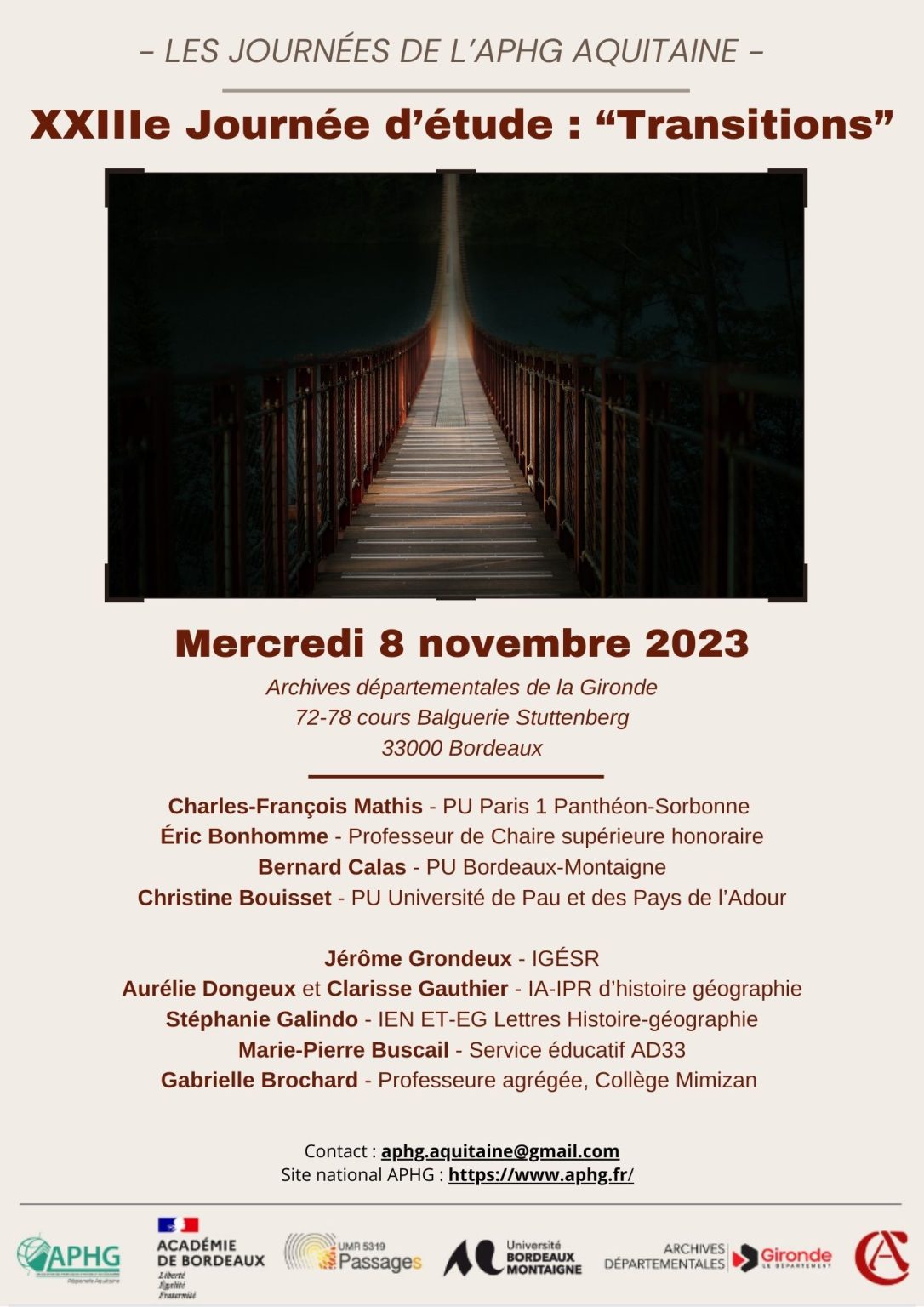 Cette XXIIIe Journée d’étude en histoire et géographie s’intitulera « Transitions ».
