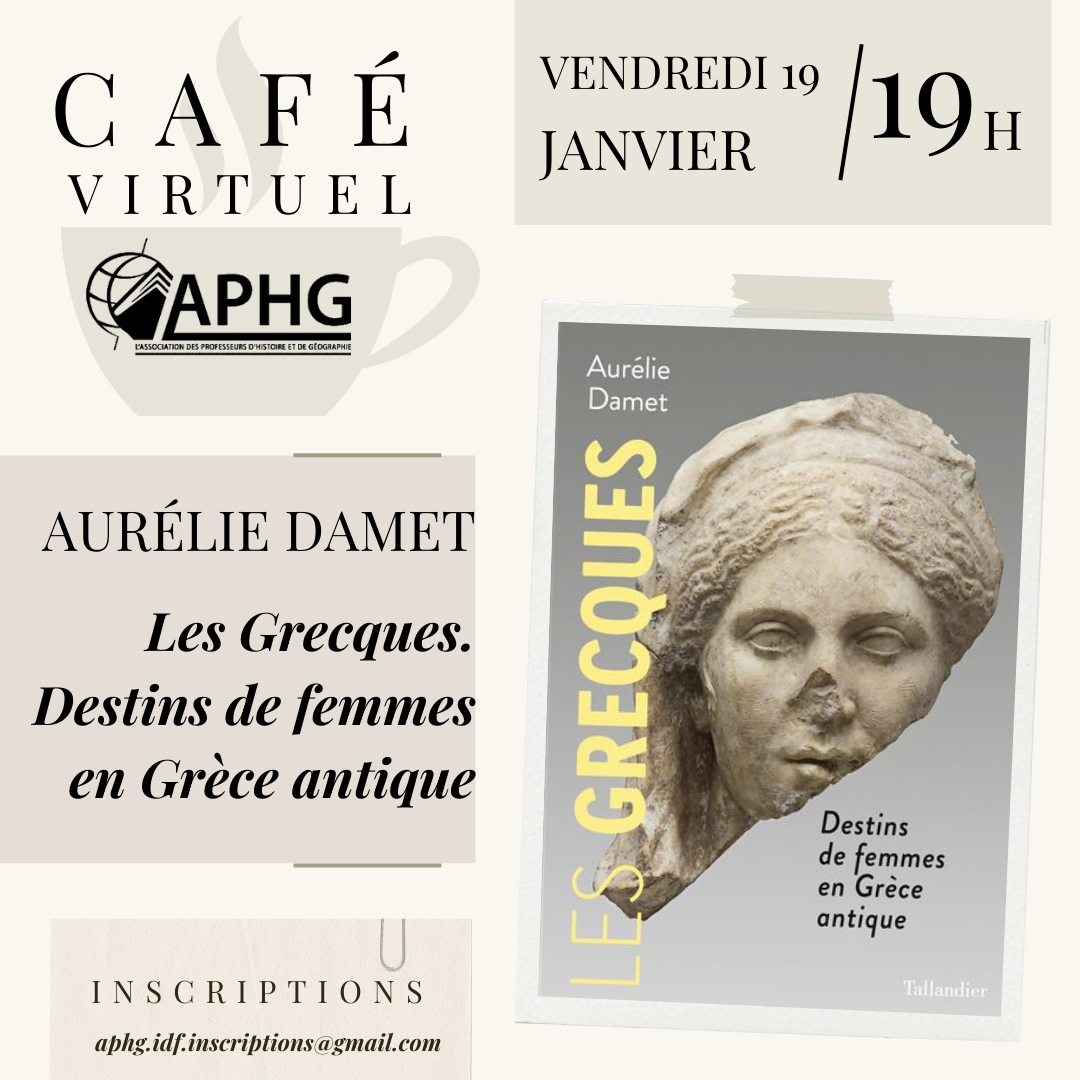 Le café virtuel a reçu Aurélie Damet le 19 janvier 2024 pour la présentation de son ouvrage Les Grecques. Destins de femmes en Grèce antique.