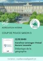 Opération coup de pouce pour préparer l’Agrégation interne organisée par l’APHG pour ses adhérents de l’année 2024-2025 sous la forme de conférences et de séances de méthodologie des épreuves.
