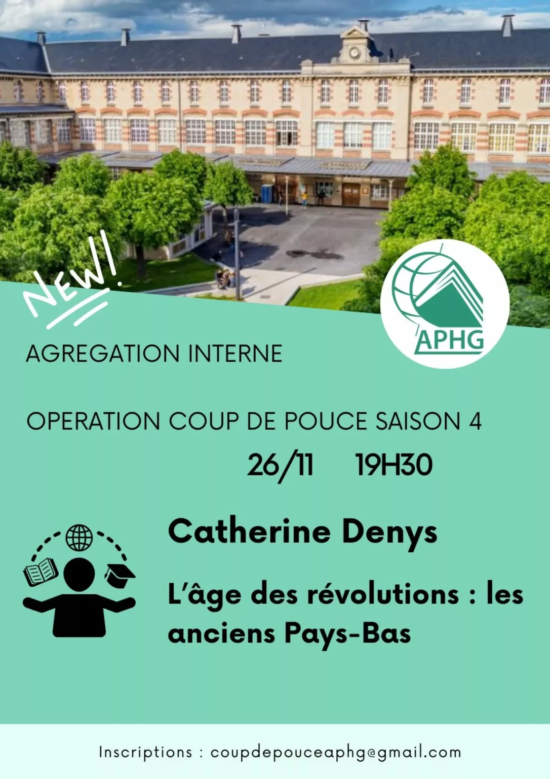 Opération coup de pouce pour préparer l’Agrégation interne organisée par l’APHG pour ses adhérents de l’année 2025-2026 sous la forme de conférences et de séances de méthodologie des épreuves. Vous pouvez retrouver sur cette page une séance de Catherine Denys consacrée au thème « L’âge des révolutions : les anciens Pays-Bas ». Le podcast est proposé en version audio. Pour vous inscrire au dispositif, une seule adresse : coupdepouceaphg@gmail.com Vous pouvez télécharger le support de la séance ci-dessous : intervention_catherine_denys_chronologie_et_noms_propres
