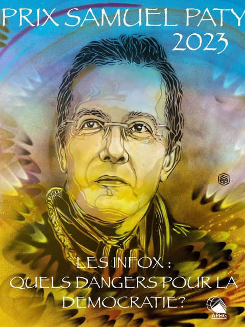 La première session du Prix Samuel Paty 2021/2022, en hommage à notre collègue assassiné en octobre 2020, qui invitait les classes du collège, à réfléchir, dans le cadre de l’EMC, au thème suivant « Sommes-nous toujours libres de nous exprimer ? » a suscité de nombreuses inscriptions, plus d’une centaine ! 19 académies, 2 établissements relevant de l’AEFE (Naples et Fribourg) ont concouru cette année, soit 90 classes inscrites au concours. Une première session marquée par des travaux variés et d’une grande qualité : vidéo, webradio, calameo, dessins et poèmes, murs numériques, baladodiffusion. Un jury composé de 18 membres, des professeurs issus de l’enseignement secondaire et supérieur, un membre de la famille de Samuel Paty et un référent du CLEMI. Une remise du prix officielle qui se tiendra le 15 octobre 2022 à l’Université de la Sorbonne Paris, pour récompenser les 3 classes lauréates ! Le palmarès est à retrouver ici. Nous tenions à remercier toutes les classes et les professeurs pour leur investissement et la réflexion menée, et vous invitons à participer à la 2ème session du Prix Samuel Paty, ouverte désormais aux élèves des collèges, des lycées généraux et technologiques, et des lycées professionnels.[/Pour le Jury, Dalila Chalabi, membre du Comité de pilotage du Prix Samuel Paty, Montpellier/] Illustration « en une » : Affiche de la seconde édition du Prix Samuel Paty. © C215, pour l’APHG. Tous droits réservés. © Historiens & Géographes n° 459, août 2022, p. 31. Tous droits réservés.