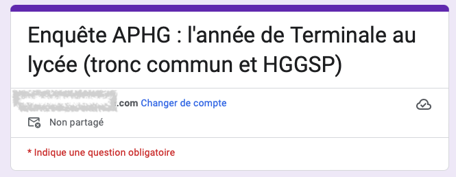 Chers collègues adhérents de l’APHG, L’année de Terminale s’achève après une énième mouture du baccalauréat et le déplacement des épreuves en juin, suivies du grand oral. Cette année a été celle de la surchauffe. Au sein de l’atelier lycée, lors des rencontres APHG, d’échanges au sein des régionales, vos constats sont nombreux sur la lourdeur de l’année de Terminale en spécialité HGGSP, mais aussi en tronc commun que ce soit en Terminale générale ou technologique. Un aménagement des programmes ou de l’épreuve en HGGSP, plus que souhaité, nous paraît devoir faire l’objet d’une réflexion soutenue entre nous, avec la vision la plus partagée. Afin de bénéficier de données les plus précises sur vos ressentis, vos attentes et vos souhaits sur cette année de Terminale, nous demandons à tous les professeurs de lycée adhérents à l’association de remplir cette courte enquête. Les données sont anonymes. L’enquête concerne les Terminales HGGSP, les...