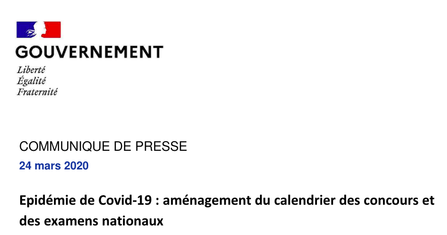 Epidémie de Covid-19 : aménagement du calendrier des concours et des examens nationaux