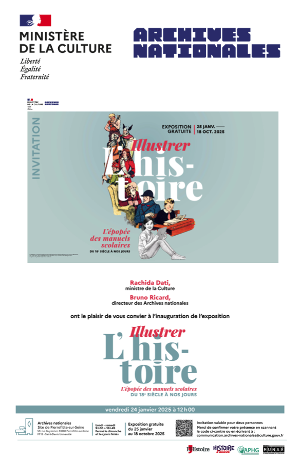 L’APHG est partenaire de l’exposition « Illustrer l’histoire. L’épopée des manuels scolaires du XVIIIe siècle à nos jours » qui se tient du 25 janvier au 18 octobre 2025 aux Archives Nationales »