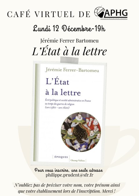 Le café virtuel a reçu Jérémie Ferrer-Bartomeu le 12 décembre 2022 pour la présentation de son ouvrage L’État à la lettre.