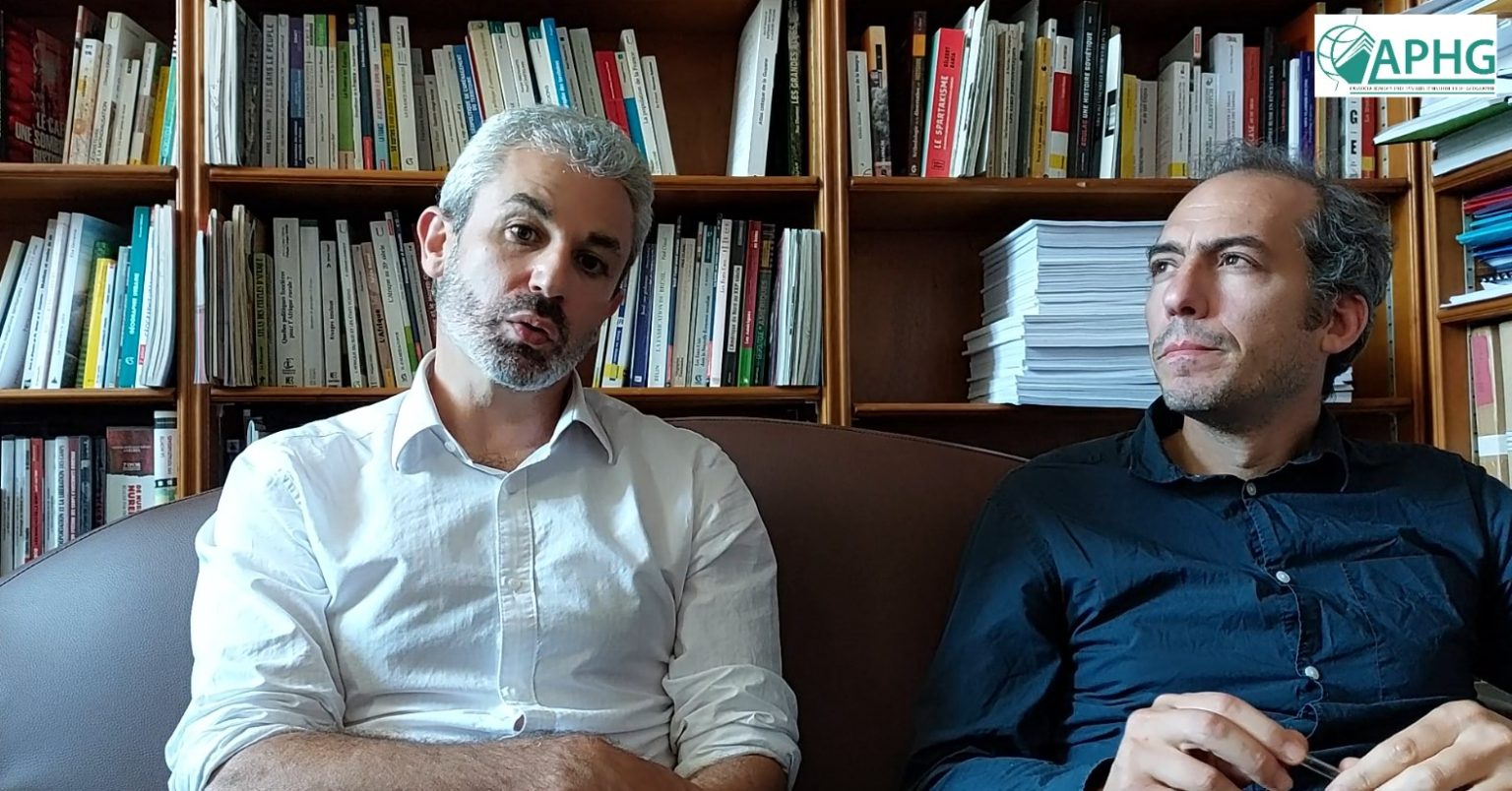 Vincent Azoulay est directeur d’études à l’EHESS. Il est notamment l’auteur de Périclès, La démocratie à l’épreuve du grand homme, paru en 2010. Paulin Ismard est professeur d’histoire grecque à l’Université d’Aix-Marseille. Il est notamment l’auteur de La démocratie contre les experts. Les esclaves publics en Grèce ancienne (Seuil, 2015) et de La Cité et ses esclaves. Institution, fictions, expériences (Seuil, 2019). Les interventions ont été enregistrées aux abords de rues passantes. Des bruits urbains peuvent gêner momentanément l’écoute, sans pour autant la rendre difficile. Nous vous prions néanmoins de bien vouloir nous excuser de la gêne occasionnée.