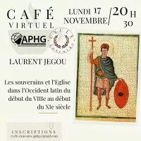 Le café virtuel a reçu Laurent Jégou le 17 novembre 2025 pour aborder le thème « les souverains et l’Église dans l’Occident latin du début du VIIIe au début du XIe siècle ».
