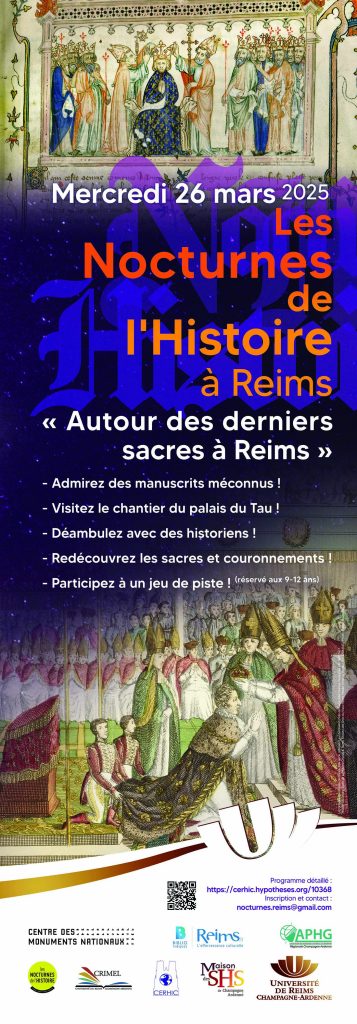Retrouvez l’affiche des Nocturnes de l’Histoire de Reims consacrée cette année aux sacres.