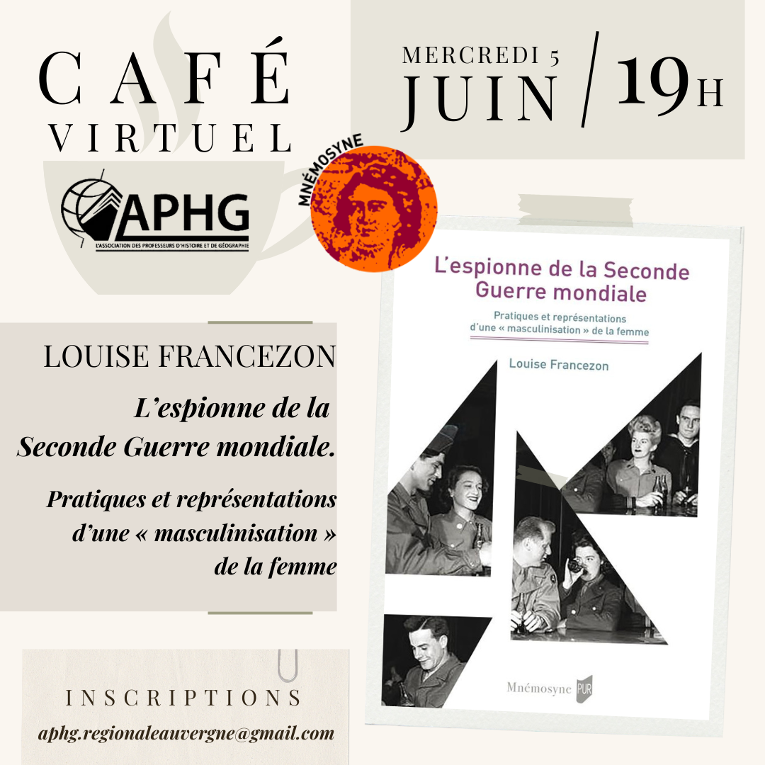 Le café virtuel a reçu Louise Francezon le 5 juin 2024 pour la présentation de son ouvrage L’espionne de la Seconde Guerre mondiale. Pratiques et représentations d’une « masculinisation » de la femme.
