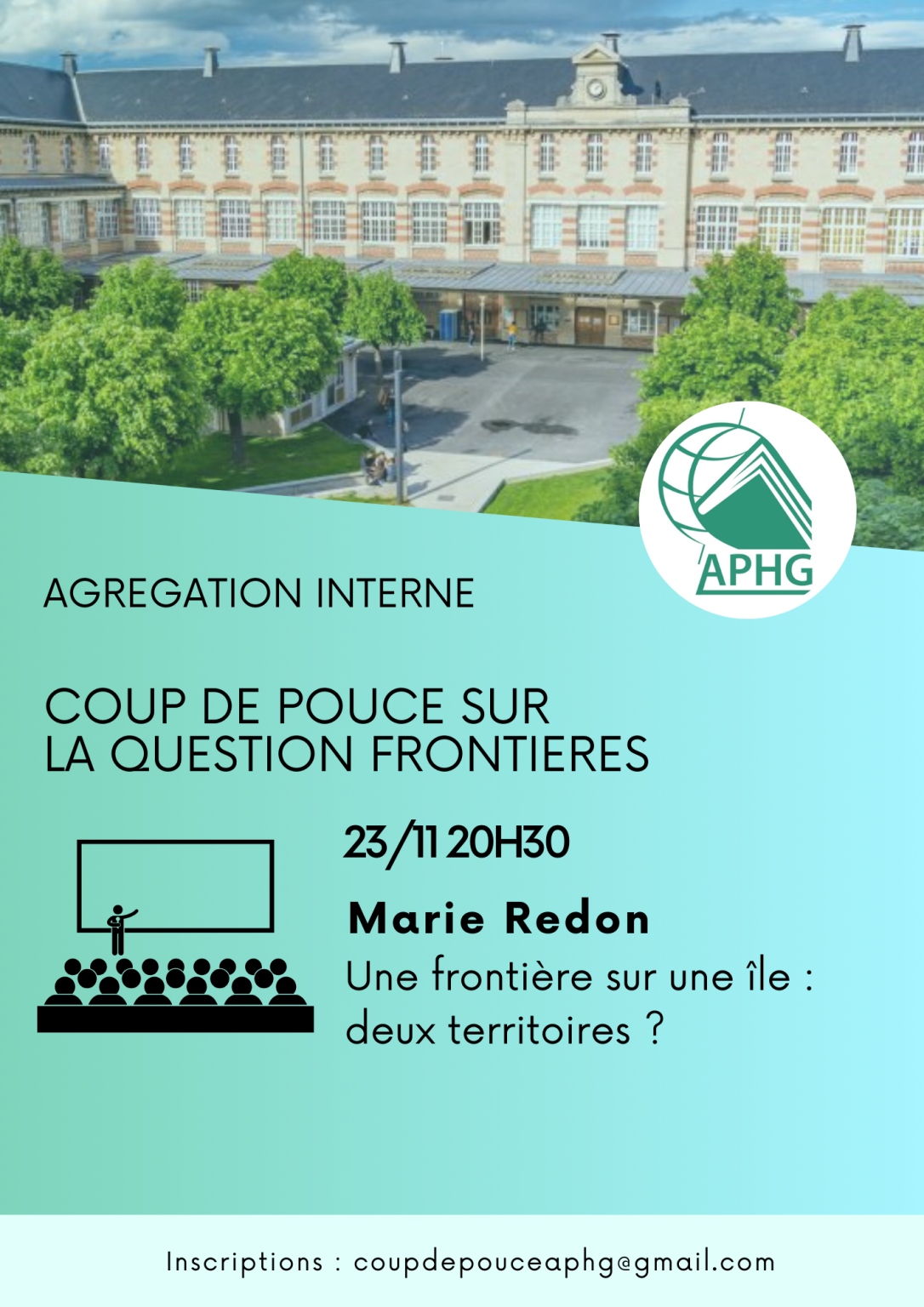 Vous pouvez retrouver au sein de cet article une conférence de Marie Redon sur le thème »Une frontière sur une île: deux territoires? Quelques enjeux géographiques d’îles divisées (Timor, Chypre, St Martin, Haïti/République dominicaine) », ainsi que le diaporama de la séance.