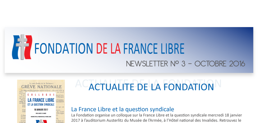 Fondation de la France Libre – Newsletter n° 3 Octobre 2016.