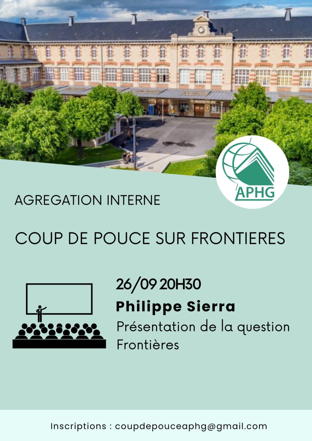 Opération coup de pouce pour préparer l’Agrégation interne organisée par l’APHG pour ses adhérents de l’année 2023-2024 sous la forme de conférences et de séances de méthodologie des épreuves.