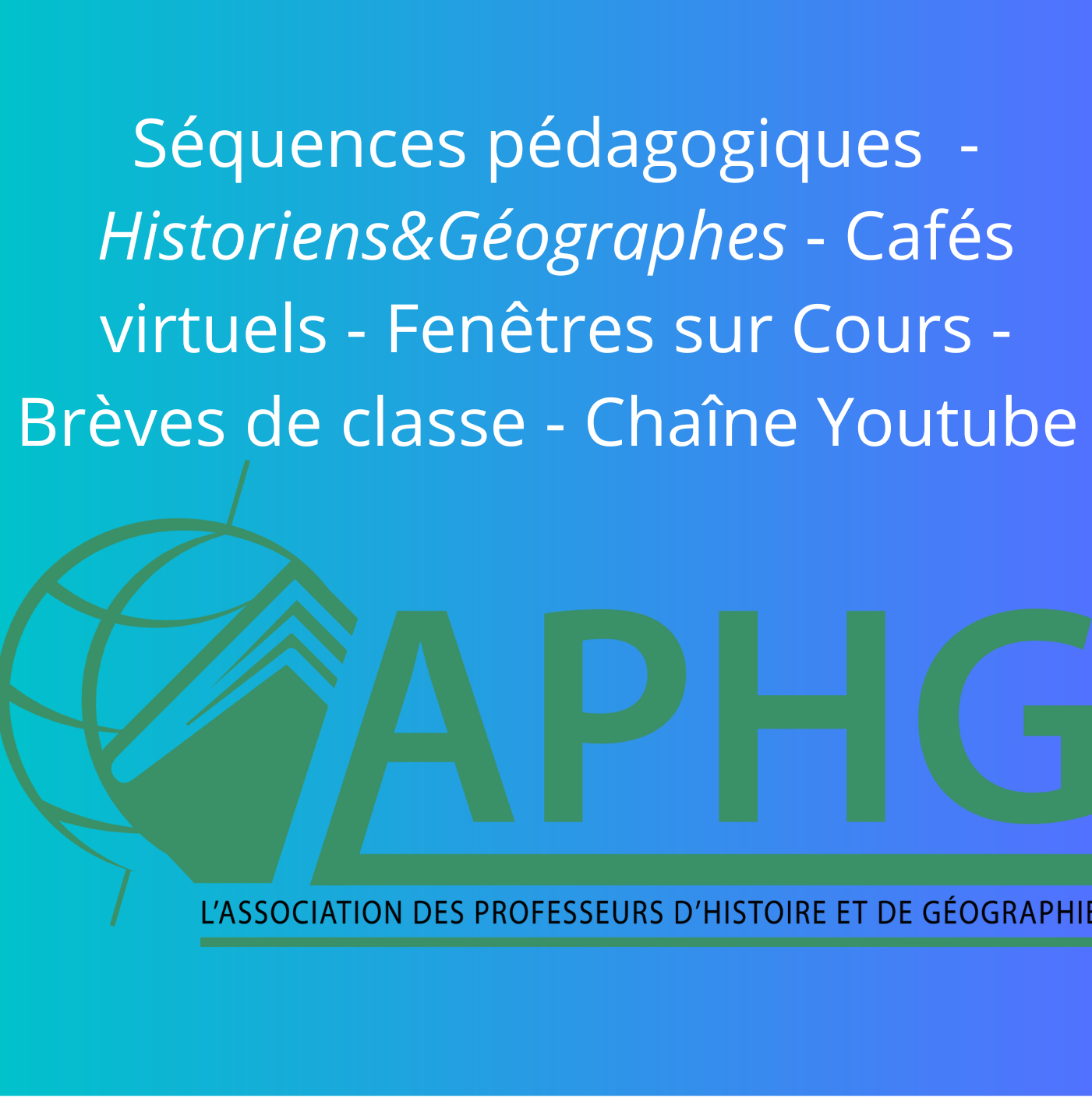 L’Associations des Professeurs d’Histoire et de Géographie propose des ressources nombreuses et variées pour aider les collègues du secondaire à préparer leurs cours, à enrichir leurs connaissances, à réfléchir sur nos matières. Ces ressources sont mises majoritairement en accès libre sur notre site ou sur la chaîne Youtube, par des bénévoles qui enseignent au quotidien. Rejoignez-nous !