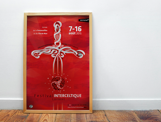 Pour mettre au premier plan les invités d’honneur, un symbole partagé a été choisi : l’épée. Elle rappelle les légendes celtes des deux pays invités : le roi Arthur et son épée Excalibur, Tristan et Iseut dormant dans la grotte, séparés par l’épée de Tristan plantée entre les deux amants, ou encore Mannanàn Mac Lir, dieu guerrier de la mythologie celtique qui brandissait son épée Fragarach, et qui aurait donné son nom à l’Île de Man. Ainsi, toutes les légendes évoquées viennent baigner cette édition du Festival d’une aura de magie.