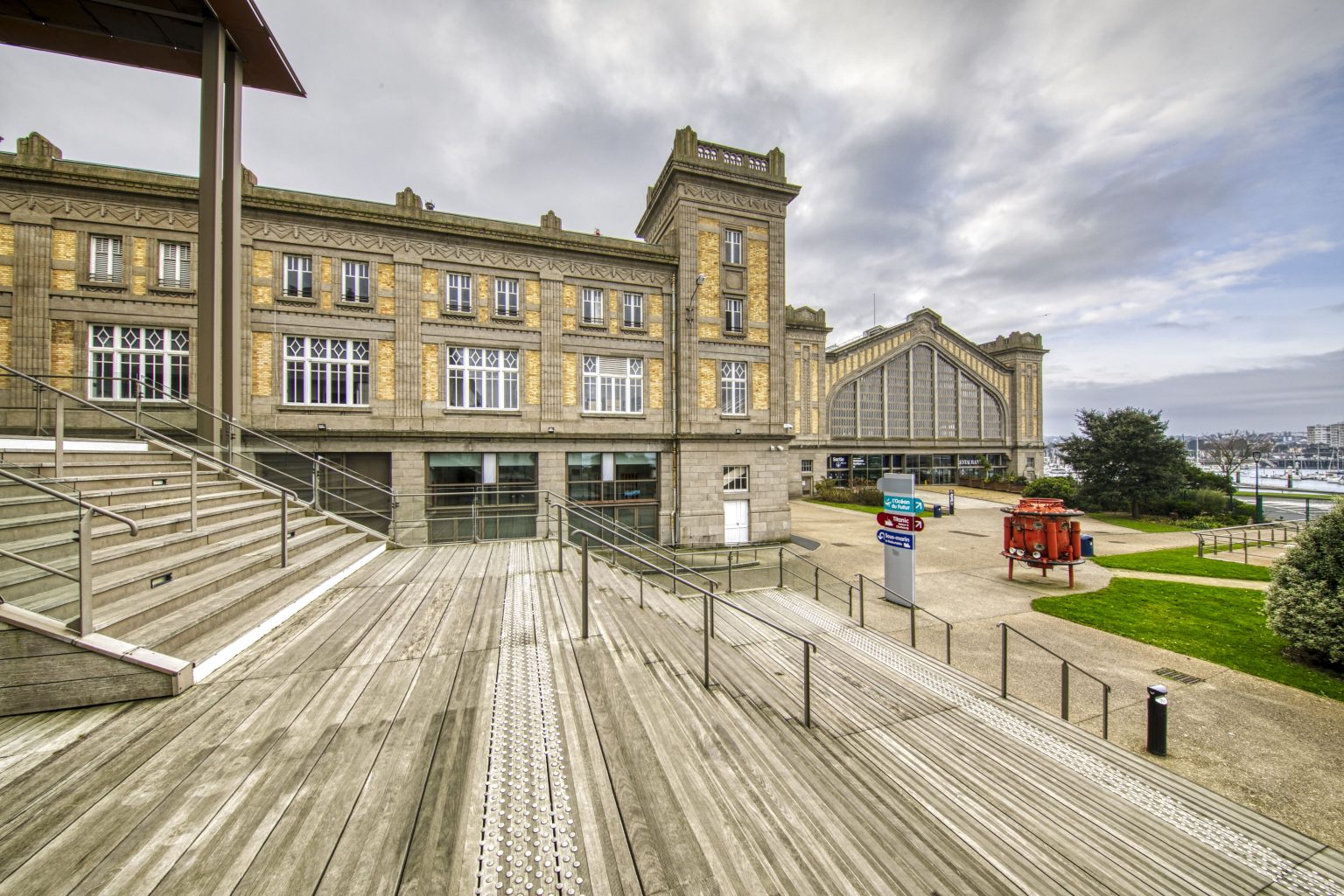 Le grand hall de la Cité de la mer, en accès gratuit, est d’emblée digne d’intérêt puisque l’on y distingue encore les emplacements des voies et des quais des trains qui déversaient les voyageurs pour que ceux-ci puissent emprunter les escaliers en direction des salles d’embarquement.