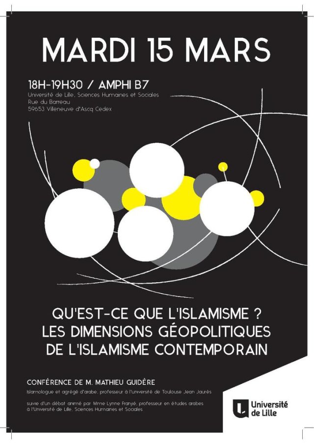 Une annonce de la Régionale APHG Nord-Pas-de-Calais : "Qu’est-ce que l’islamisme ? Les dimensions géopolitiques de l’islamisme contemporain", avec Mathieu Guidère.