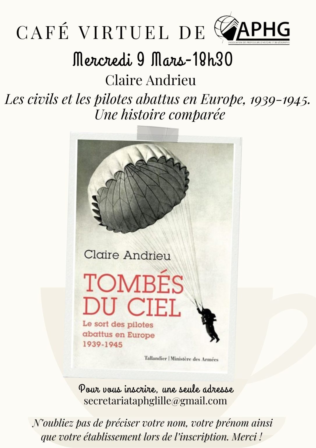 Le mercredi 9 mars, l’APHG Nord-Pas-de-Calais recevait Claire Andrieu pour Tombés du ciel : le sort des pilotes abattus en Europe- 1939-1945.