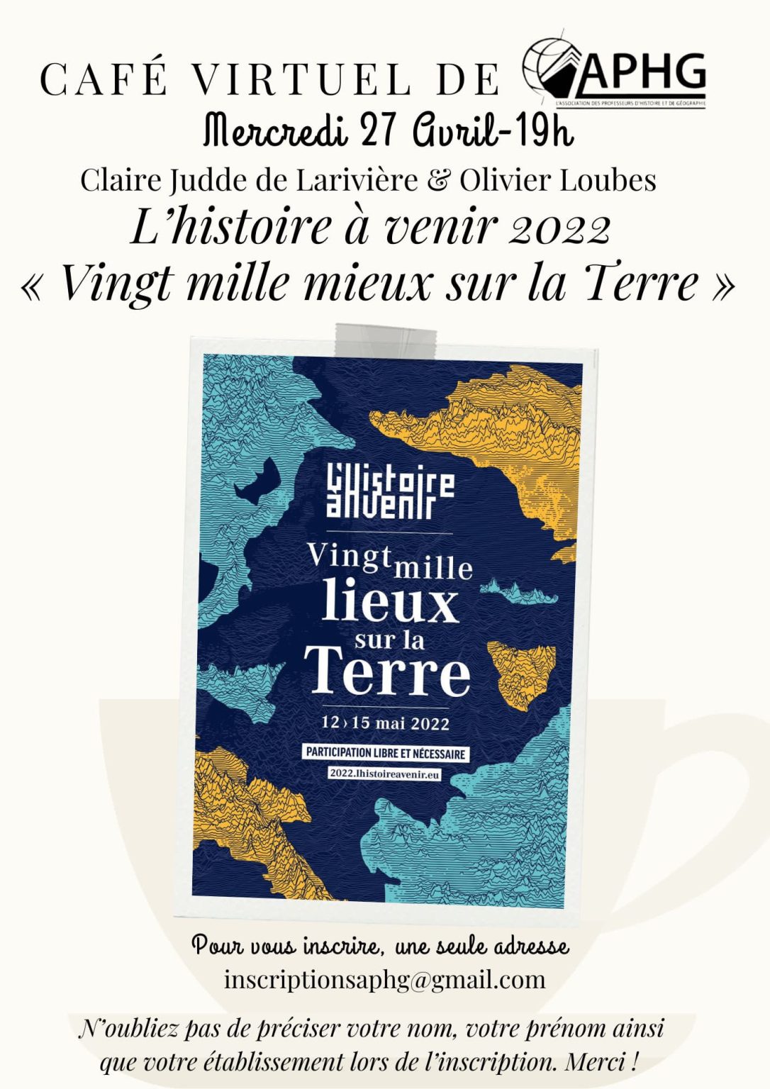 Le 27 avril 2022, l’APHG recevait Claire Judde de Larivière et Olivier Loubes qui nous présentaient l’édition 2022 du festival « L’histoire à venir », dont le thème est « Vingt mille mieux sur la terre ». L’échange était animé par Joëlle Alazard et Philippe Sierra.