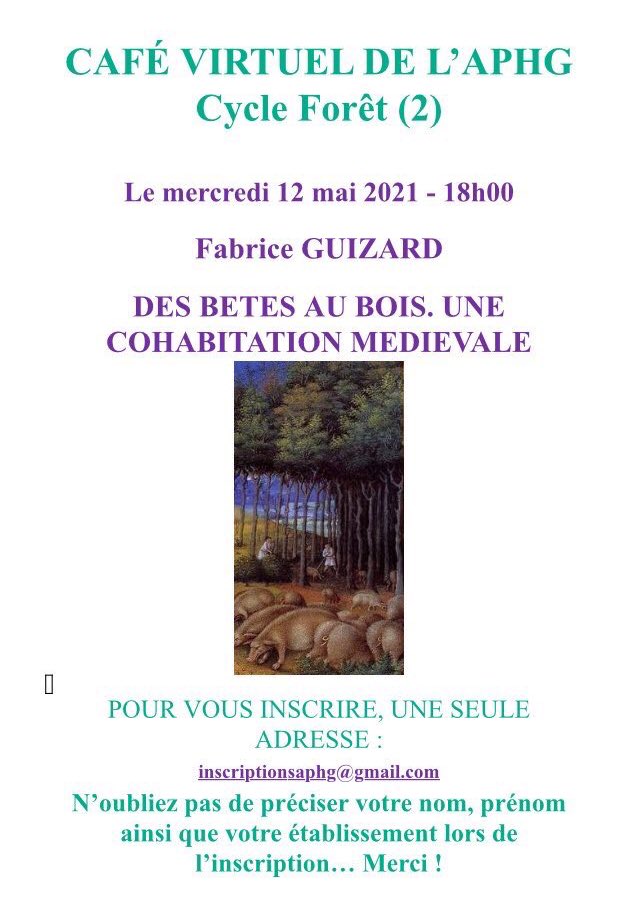 Le 12 mai 2021, dans le cadre du cycle Forêt animé par Christelle Loubet-Balouzat, l’APHG Nord-Pas-de-Calais recevait dans le café virtuel Fabrice Guizard, pour une intervention sur « Des bêtes aux bois. Une cohabitation médiévale ».