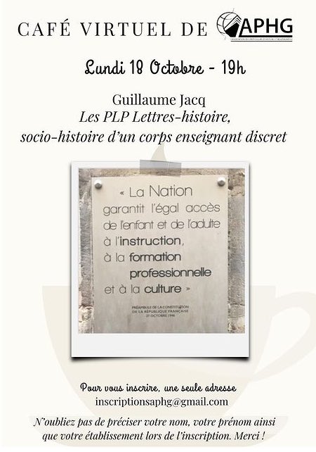 Café virtuel avec Guillaume Jacq sur la socio-histoire des PLP Lettres-histoire