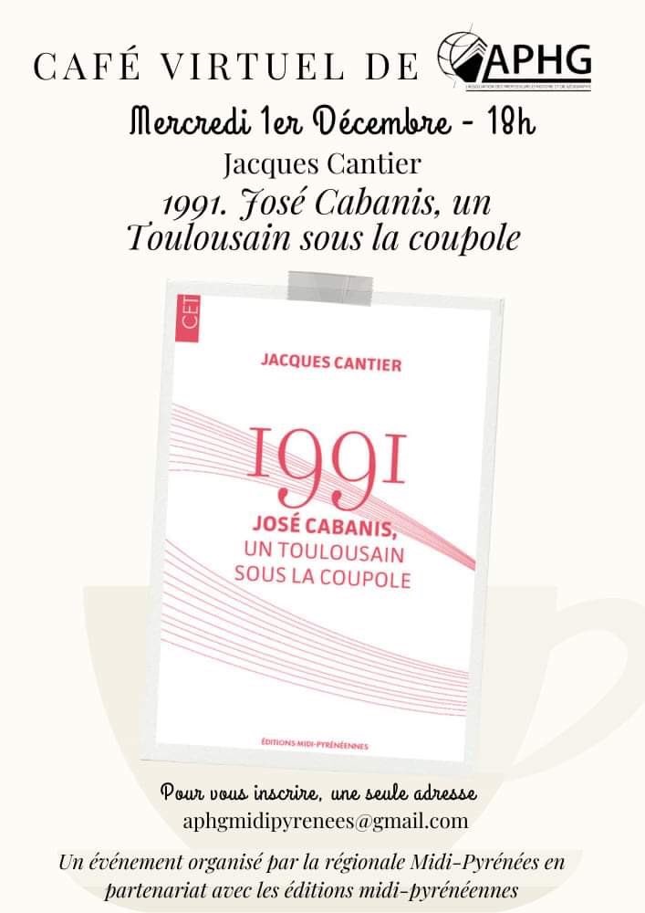 Le 1er décembre 2021, l’APHG Midi-Pyrénées recevait dans le café virtuel Jacques Cantier autour de son ouvrage 1991. José Cabanis, un Toulousain sous la coupole, paru en 2021 aux Editions Midi-Pyrénéennes, dans la collection « Cette année-là à Toulouse ».