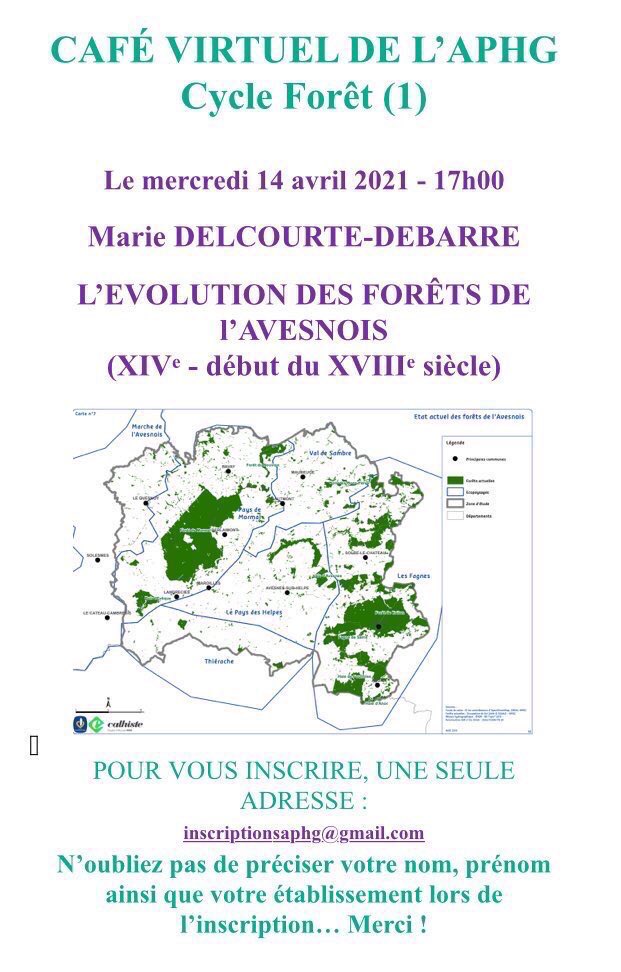 Le 14 avril 2021, l’APHG Nord-Pas-de-Calais inaugurait un cycle de cafés virtuels consacrés à la forêt. Marie Delcourte-Debarre 1 y présentait ses travaux sur l’évolution des forêts de l’Avesnois (XIVe-début du XVIIIe s.). La séance était animée par Christelle Loubet-Balouzat. Nous mettons en accès libre le podcast de ce passionnant café, en version audio pour protéger le droit à l’image des participants.