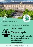 Vous pouvez retrouver sur cette page une séance de Thomas Leyris autour du thème « Réformer l’empire colonial de la Seconde Guerre mondiale aux indépendances ».