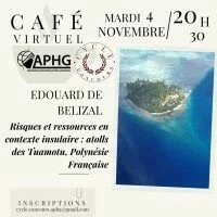 Le café virtuel a reçu Édouard de Bélizal le 4 novembre 2025 pour aborder le thème « Risques et ressources en contexte insulaire : atolls des Tuamotu, Polynésie Française ».