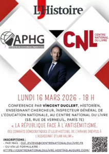 Conférence en présentiel de Vincent Duclert – « La République face à l’antisémitisme. Des combats démocratiques et leur histoire, de l’Affaire Dreyfus à l’assassinat d’Ilan Halimi »