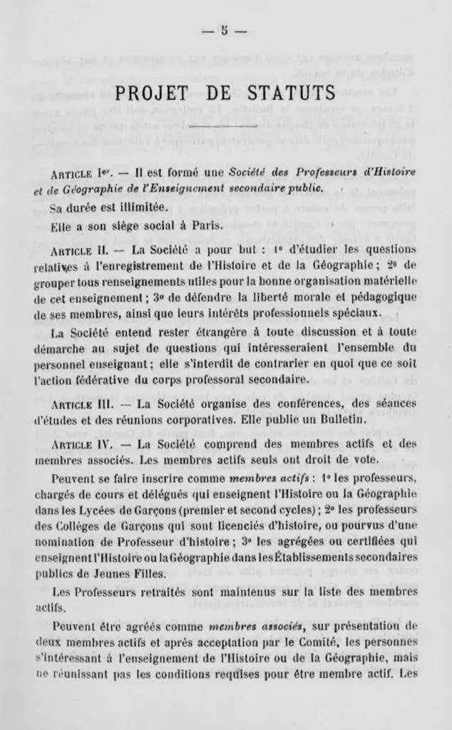 Créée le 1er novembre 1910 lors d’une assemblée générale au lycée Louis-le-Grand, la Société des Professeurs d’Histoire et de Géographie de l’enseignement public devient APHG en 1975.