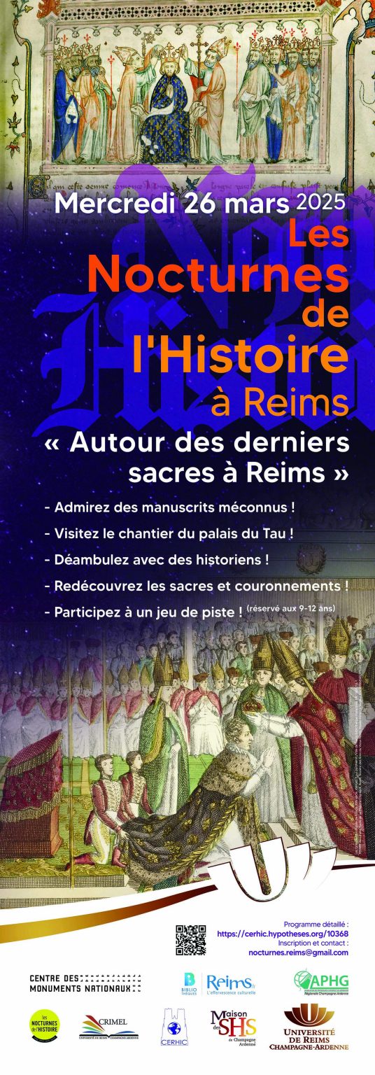 Retrouvez l’affiche des Nocturnes de l’Histoire de Reims consacrée cette année aux sacres.