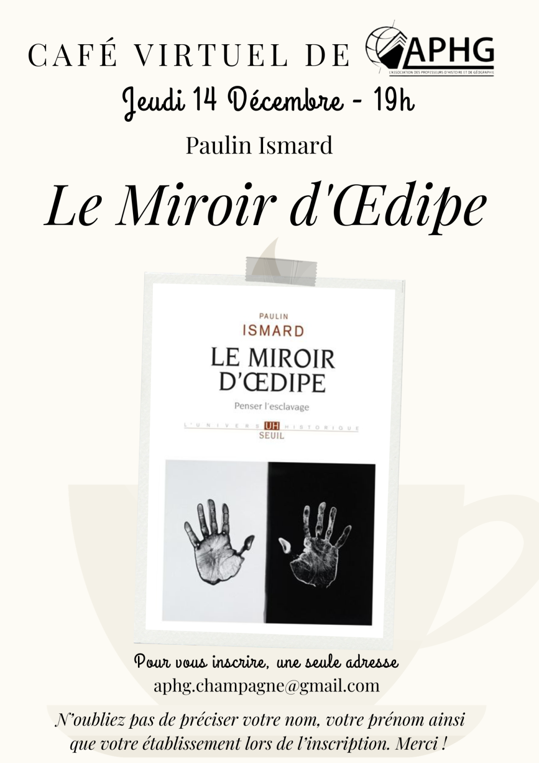 Le café virtuel a reçu Paulin Ismard le 14 décembre 2023 pour la présentation de son ouvrage Le Miroir d’Œdipe.