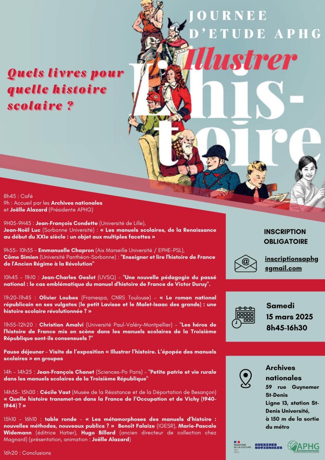 Renseignements et inscriptions : inscriptionsaphg@gmail.com