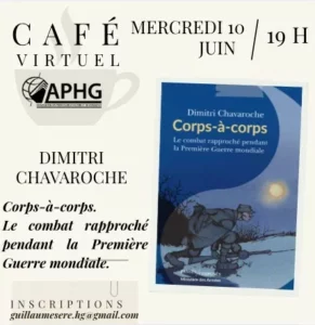 - mercredi 10 juin à 19 h, avec Dimitri Chavaroche pour son livre Corps-à-corps. Le combat rapproché pendant la Première Guerre mondiale.