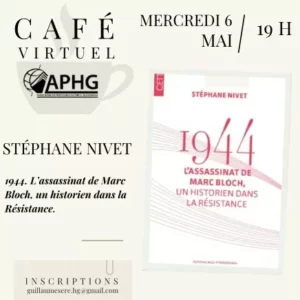 - mercredi 6 mai à 19 h, avec Stéphane Nivet pour son livre 1944. L’assassinat de Marc Bloch, un historien dans la résistance.